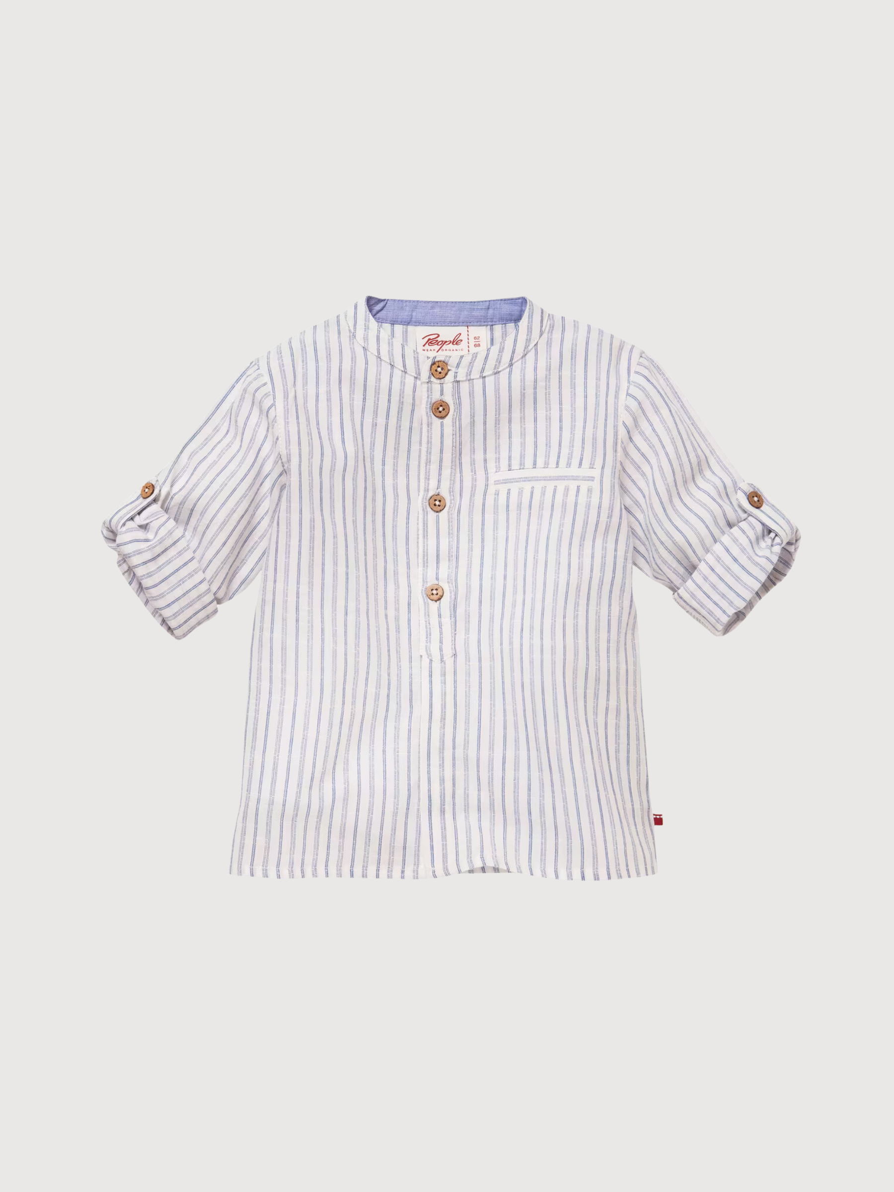 Ziehen Sie Ihren kleinen Herrn in unserem weißen, gestreiften Hemd an, das von 100% Bio -Baumwolle von zugeschnitten ist People Wear Organic. Dieses charmante Hemd bietet Kokosnussknöpfe vorne und verleiht einen Hauch von natürlicher Raffinesse, während das Detail des Standkragens und der Brusttasche einen klassischen Look für einen beliebigen Anlass bietet.