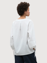 Abbraccia un mix di stile contemporaneo e moda sostenibile con questa camicetta versatile, un vero e proprio capo essenziale del guardaroba che si adatta senza sforzo a look casual ed eleganti.