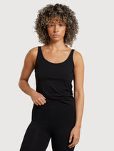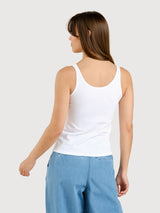 Questa canotta unisce eleganza e leggerezza, perfetta per le giornate più calde. Realizzata in TENCEL™ Lyocell e lino, ha una texture morbida e fluida con una raffinata lucentezza opaca. Il taglio classico la rende estremamente versatile, ideale sia da sola che sotto altri capi. Sostenibile e certificata vegan, è una scelta di stile responsabile.