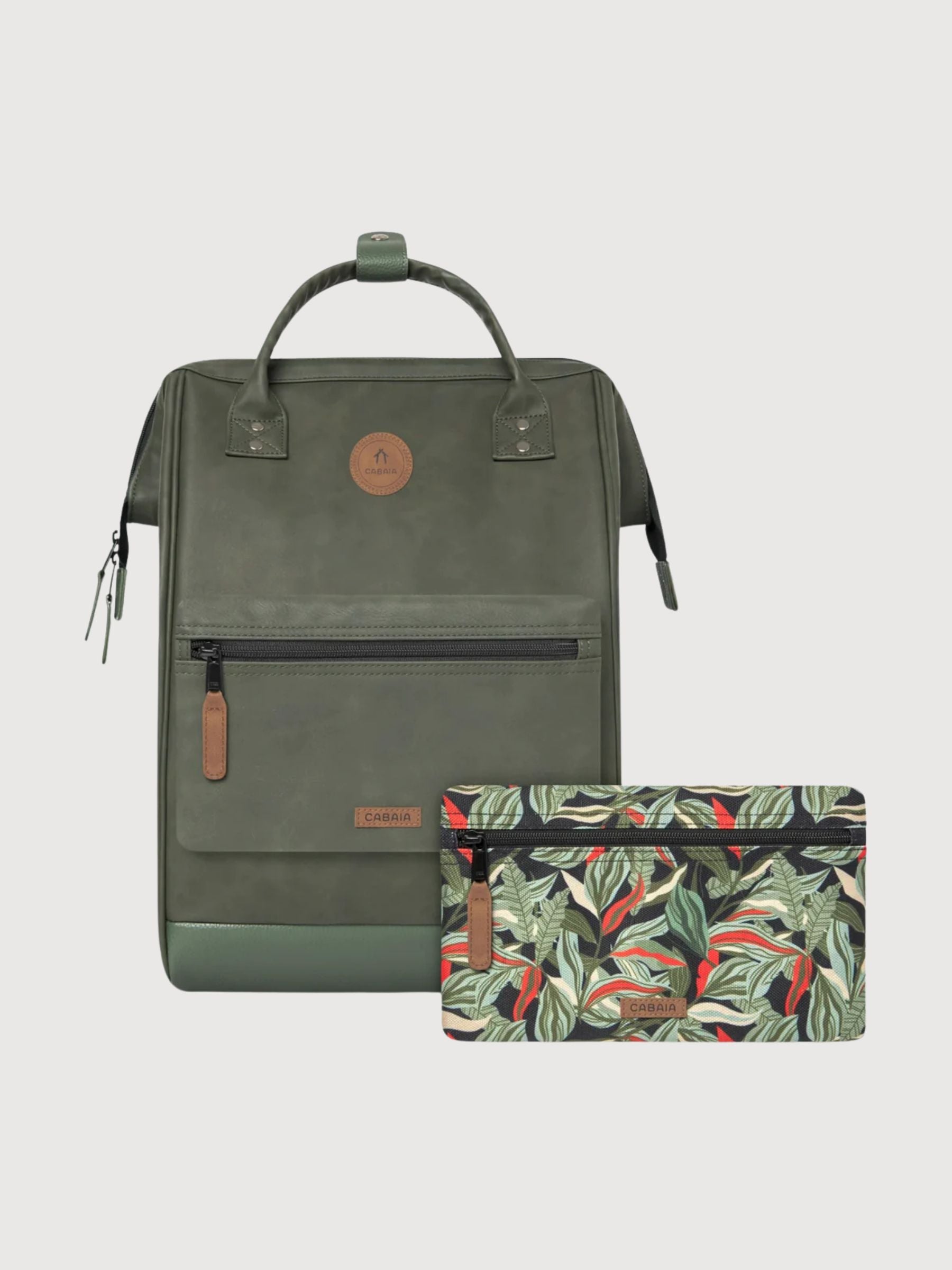 A sleek and sustainable choice for everyday use or travel, this kaki backpack is made from vegan nubuck that’s water-repellent and cruelty-free. Designed for functionality and style, it includes a strap to secure it to your suitcase for added travel ease.