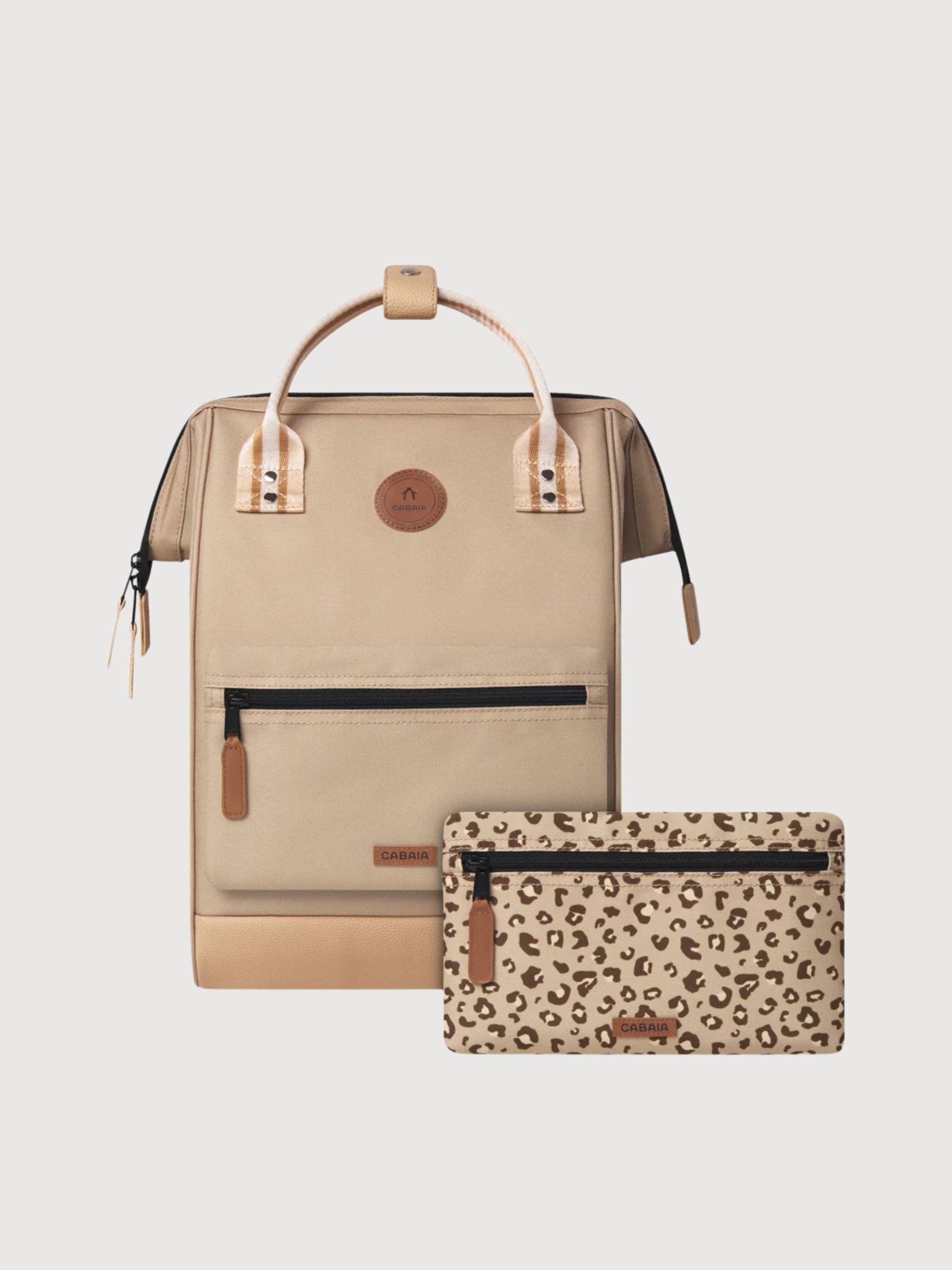The Cream Vegan Nubuck Backpack combines functionality and eco-conscious design. Crafted from vegan nubuck material, this backpack is water-repellent and features a strap for securing to your suitcase, making it perfect for travel, work, or daily use.