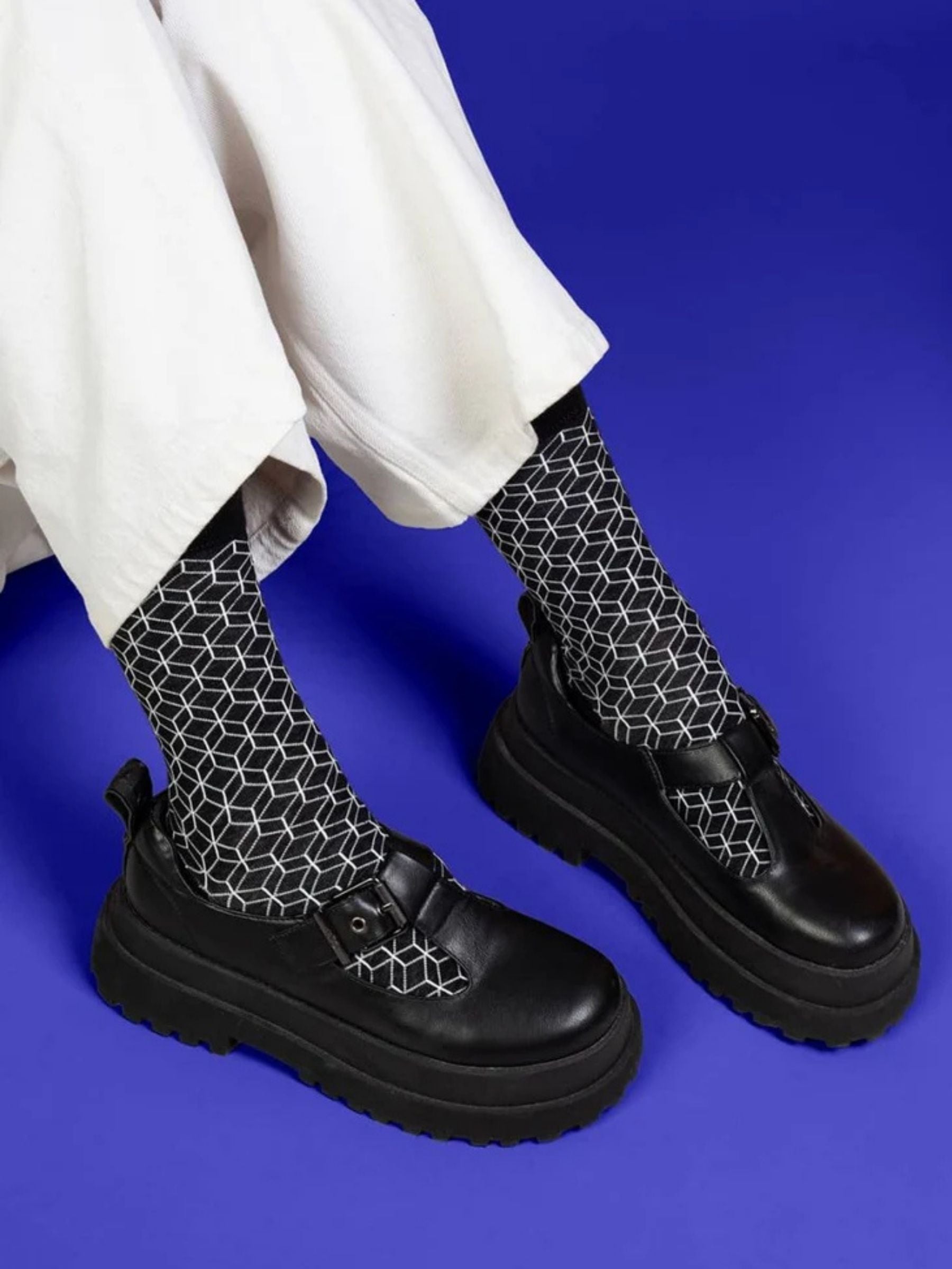 Classically chic – for feet with style. Colorful socks with geometric motif