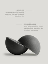 Achieve a clearer, healthier complexion with this gentle yet effective solid cleanser, designed for both face and body. Infused with activated charcoal, azelaic acid, and tea tree oil, it effortlessly removes excess oil, dirt, and impurities, leaving skin feeling deeply cleansed and refreshed. Kalahari melon seed oil and macadamia oil nourish and hydrate without drying, while aloe vera and chamomile extract calm and soothe. Ideal for combination or oily skin, especially those with large pores or blemishes, this cleanser helps promote a balanced, smooth, and clear appearance from head to toe.