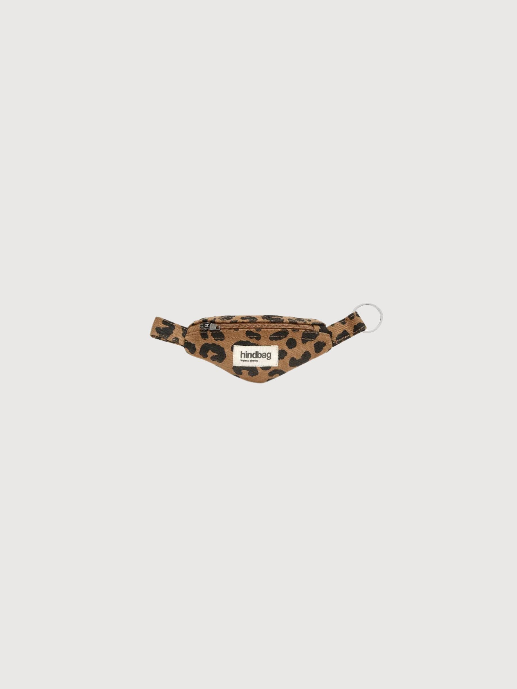 The Come Bag Leopard Cannelle by Hindbag is an original mini belt bag-shaped keyring, made from durable GOTS-certified organic cotton. With its leopard print on a cinnamon background, it adds a bold and playful touch to your everyday style.