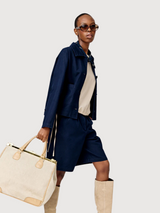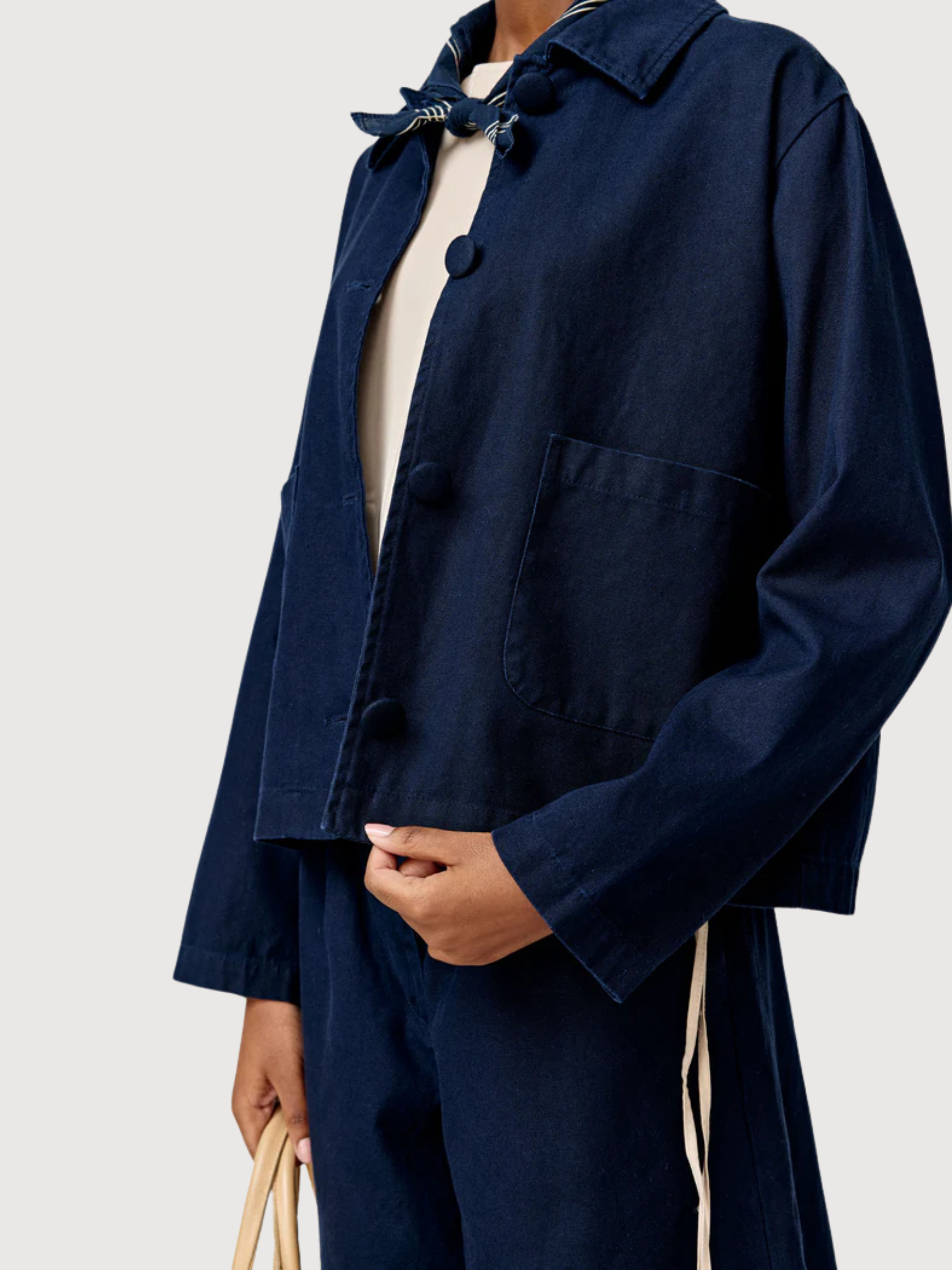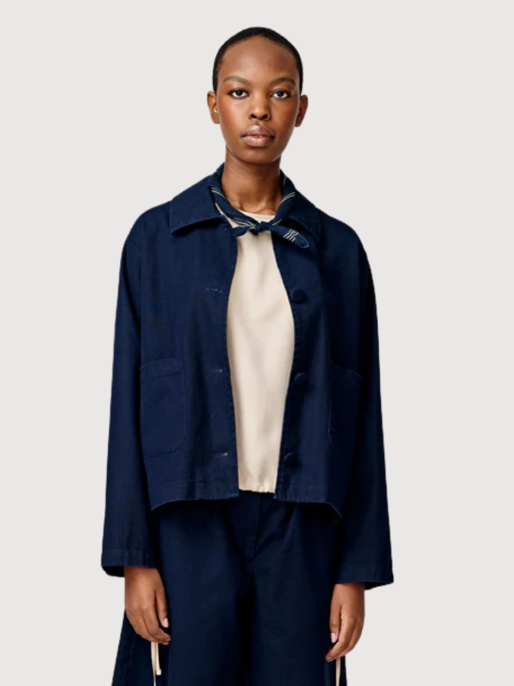 The Kaisa Jacket combines the best of classic design with sustainable materials. Made from a durable blend of 55% hemp and 45% organic cotton, this jacket is breathable, water-saving, and resistant to pilling. The slightly workwear-inspired, regular fit and straight cut give it a versatile, timeless look that works as both a summer jacket or an overshirt. Featuring large, self-covered buttons and a stylish spread collar, the Kaisa Jacket offers a refined, minimalistic silhouette. Pair it with the Lola Shorts for a complete summer look or layer it over your favorite casual outfit.