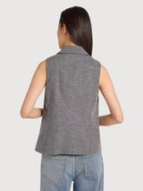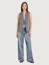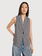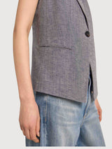 This long vest made of high-quality cotton-linen twill impresses with its stylish V-neck and classic collar. A subtle waist button accentuates the feminine silhouette and gives the design a subtle sophistication. Versatile - whether with pleated wide-leg trousers or as a highlight in individual looks, this vest complements every outfit with charming lightness.