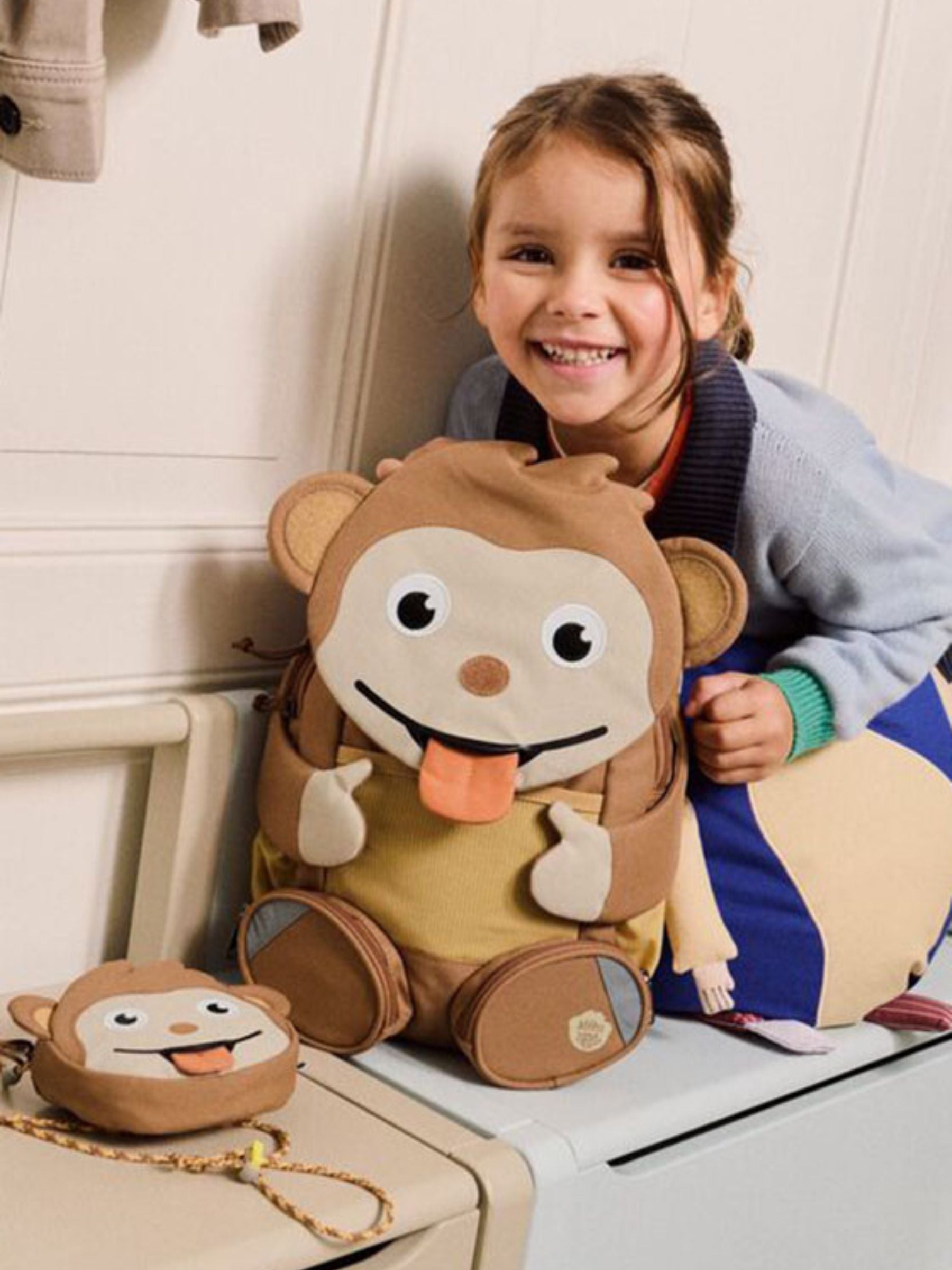 The Big Friend Monkey backpack made of recycled polyester is the ideal companion for children attending daycare, with a capacity of 8 liters. Recommended for children ages 3 to 5 years old and with a minimum height of 90 cm, this backpack is designed to fit the needs of toddlers perfectly. With a size of 25 x 32 x 18 cm (W/H/D) and a weight of about 470 g, the backpack is lightweight and easy for little explorers to carry. Its 8-liter capacity provides enough space to store everything they need throughout the day, from snacks to a change of clothes. Made of recycled polyester, this backpack is an eco-friendly choice for environmentally conscious parents. Its durable, high-quality material ensures durability and easy cleaning. In addition, the penguin design on the backpack will make your child excited to wear it every day.