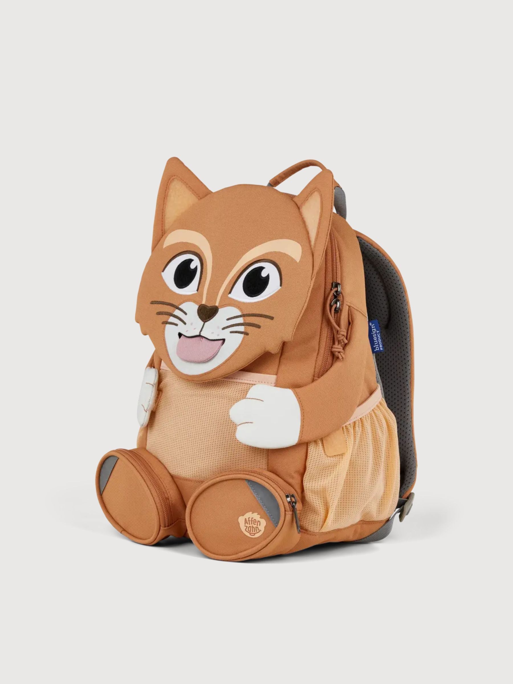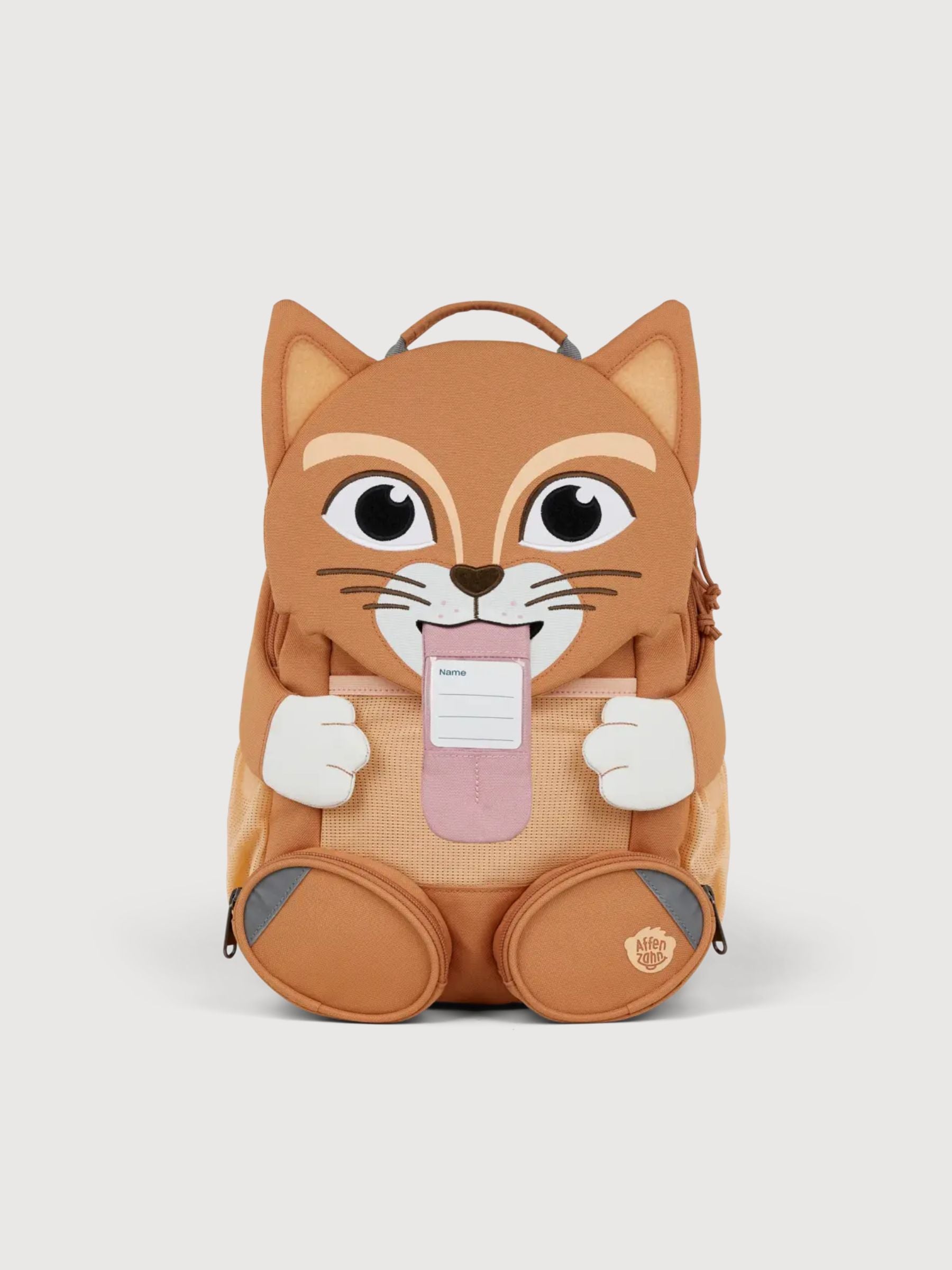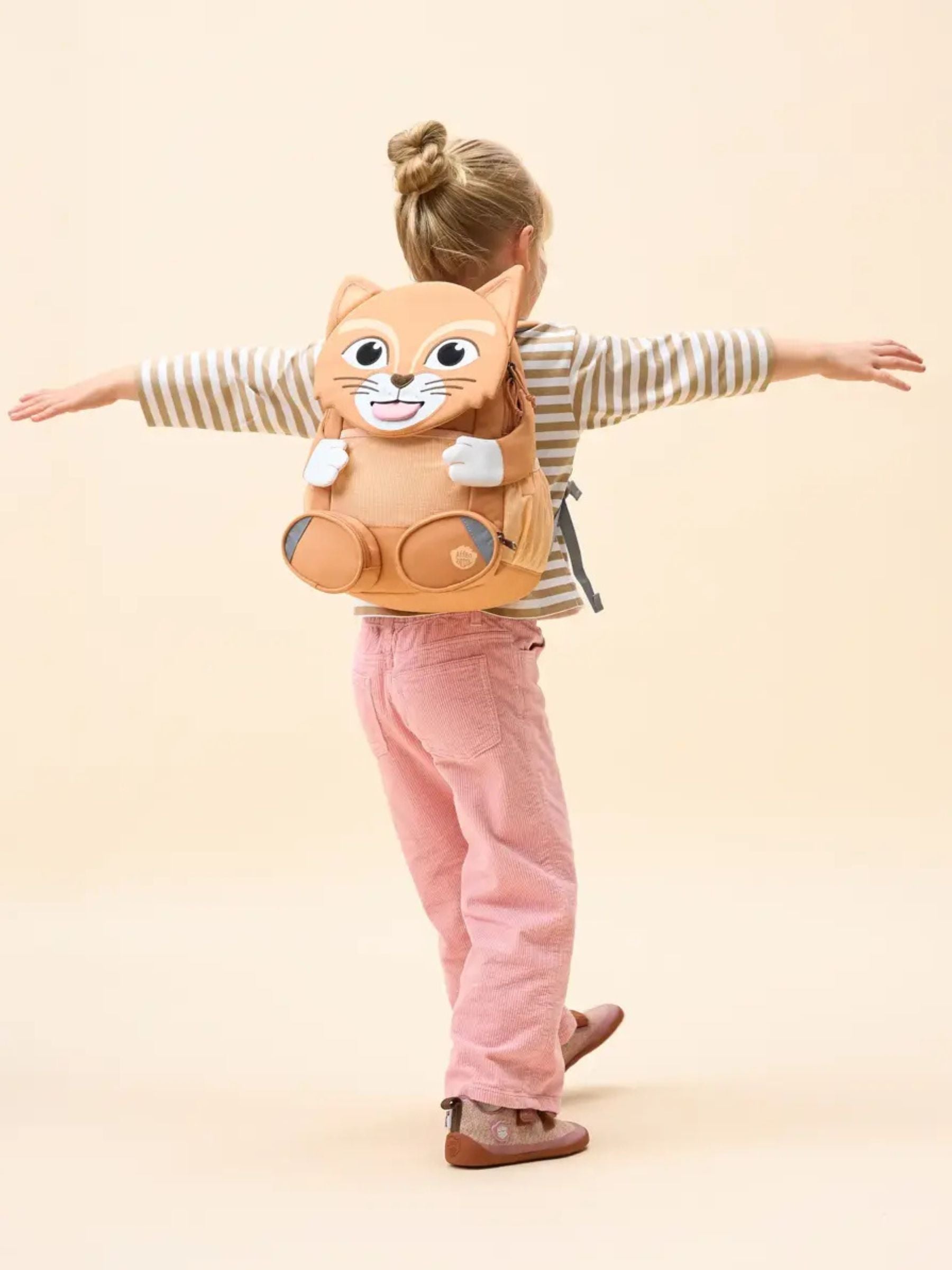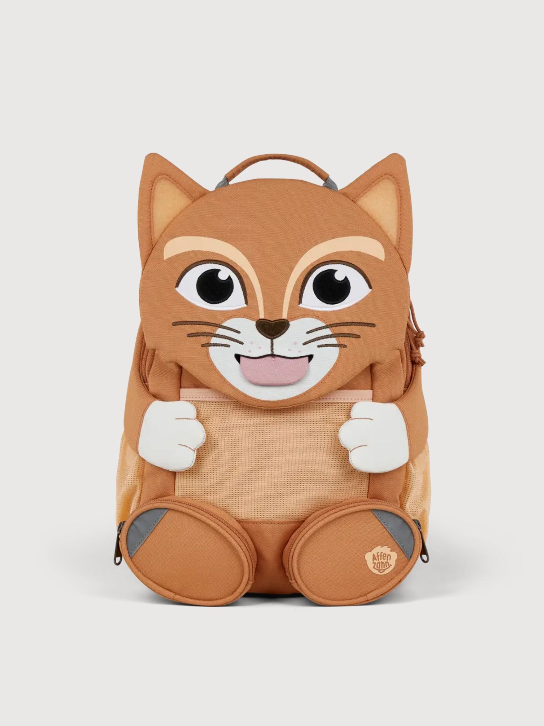 The Big Friend Cat Backpack made from recycled polyester is the perfect companion for children attending daycare. This eco-friendly backpack offers a playful design along with practicality, providing little ones with the space they need to carry their essentials.