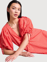 Get ready to stand out in the Maxi Dress DANS, a dress with a refined and inclusive design, made to enhance every silhouette. The maxi length and deep V-neckline give a natural elegance, while the loose cut and flared skirt with gathering at the waist create a harmonious and fluid shape. The balloon sleeves add a playful and contemporary touch.