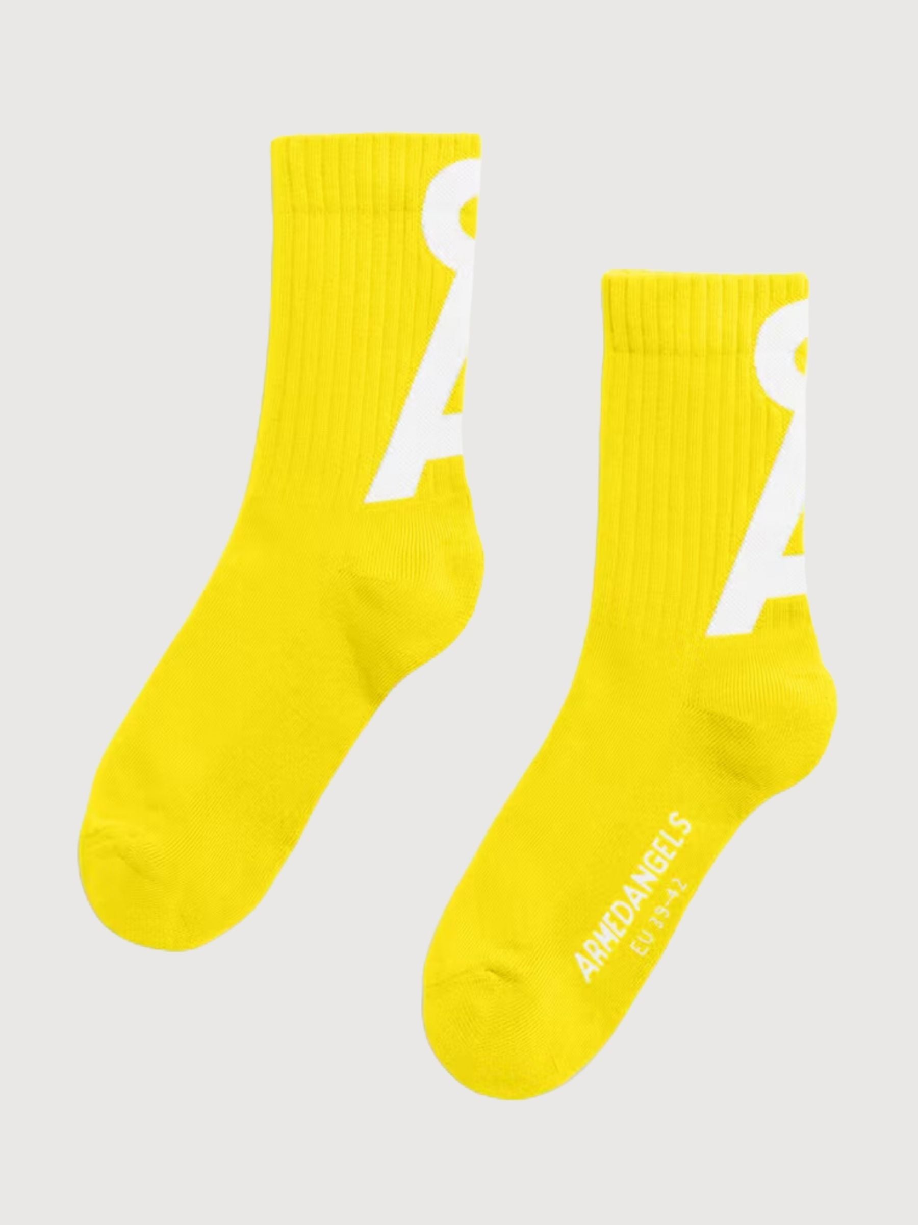 Choose the Saamus Short Yellow Socks from Armedangels for a fresh, dynamic look ideal for those who want to express their style consciously and responsibly every day.