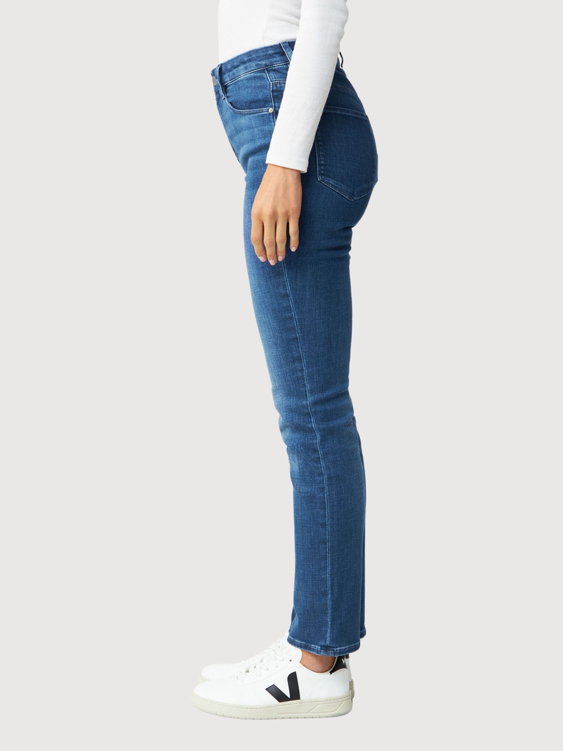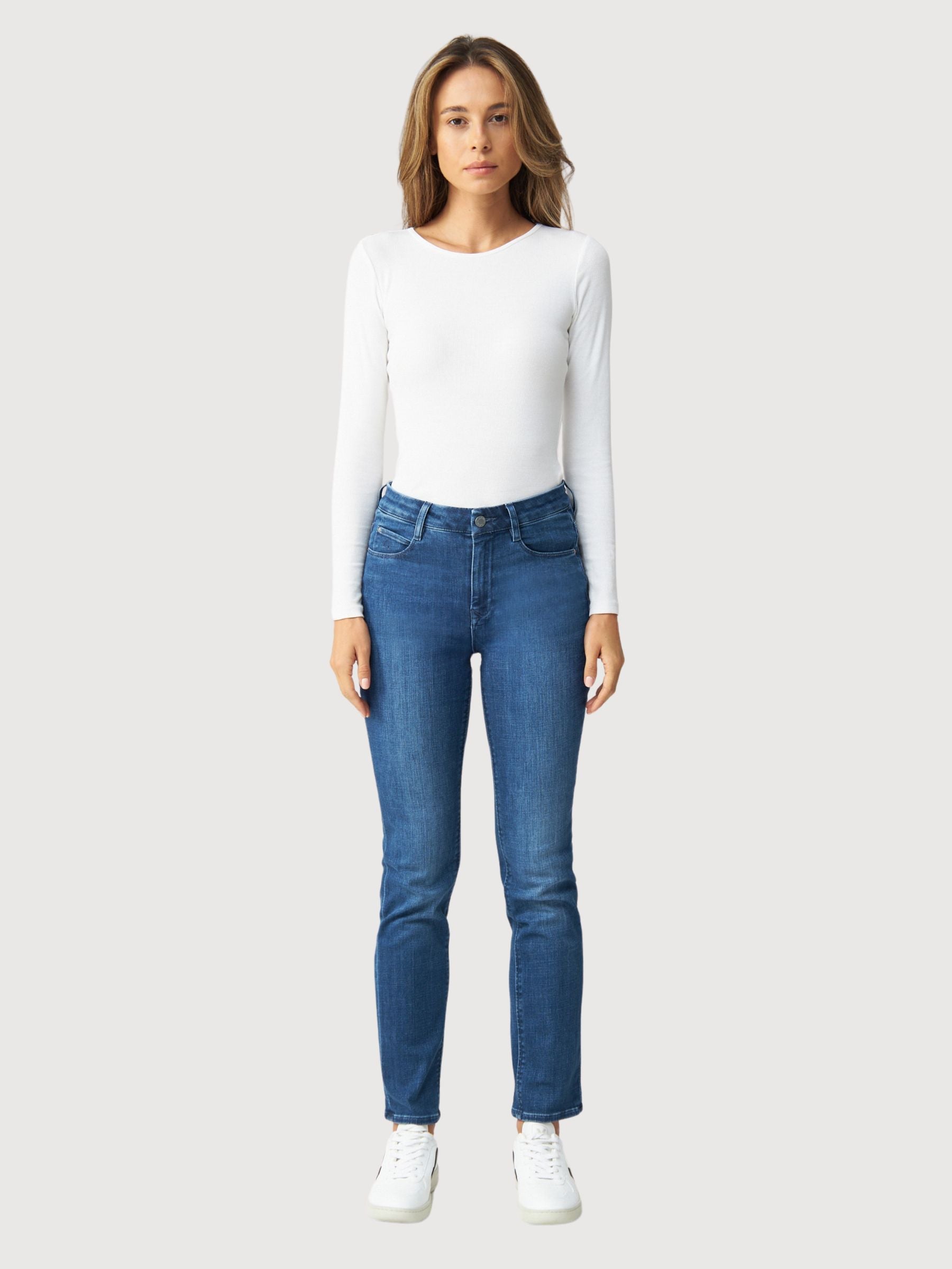 The “Stellar Slim Straight Comfortstretch - Classic” from DAWN Denim is a timeless denim classic. These high-waisted jeans are distinguished by their slim straight cut and 5-pocket design, giving them a timeless, essential look. The comfortable stretch material, designed to ensure a lightweight feel and freedom of movement, makes them especially suitable for those who prefer a casual, comfortable style without sacrificing the elegance of a well-cut garment.