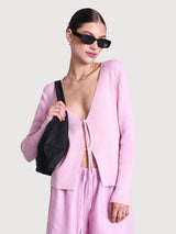 The new TANGY cardigan is the ideal companion for the warmer months. With a deep neckline and two front ties for closure, it stands out for its minimal style yet full of personality.